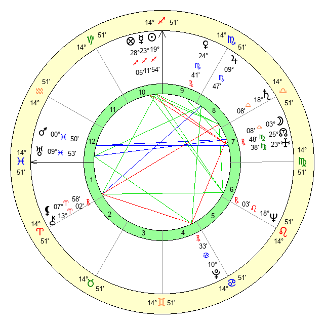 | Mars | 0 Pisces 51 | 28 Sagittarius 2 | 15 Taurus 14 |