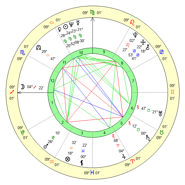 | Neptune | 23 Virgo 8 | 0 Aries 52 | 25 Virgo 27 |