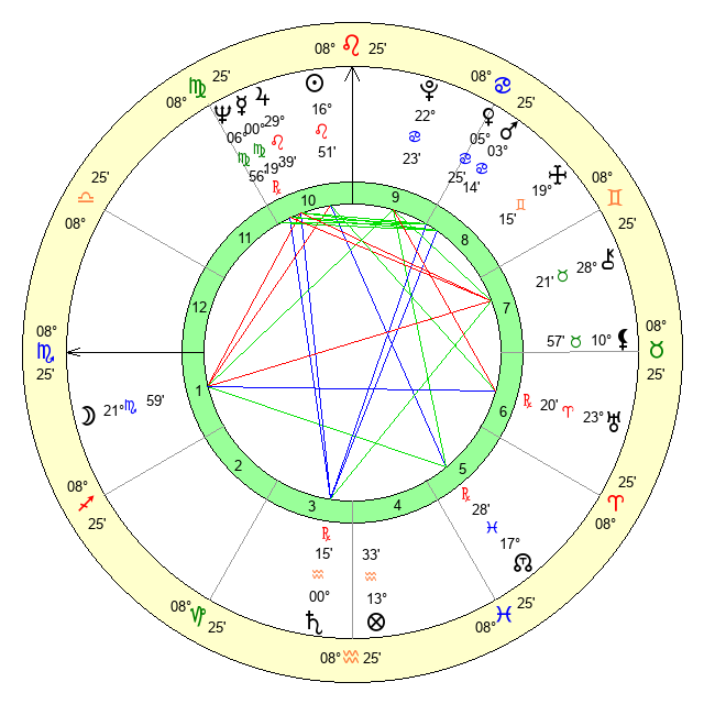 | Jupiter | 29 Leo 27 | 13 Cancer 33 | 18 Virgo 7 |