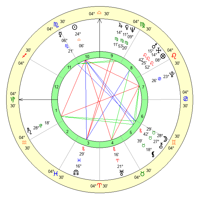 | Mars | 15 Leo 42 | 17 Scorpio 23 | 20 Virgo 14 |