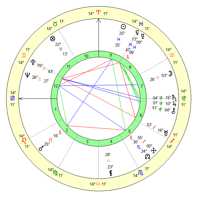 | Mars | 25 Leo 15 | 19 Cancer 24 | 2 Libra 47 |