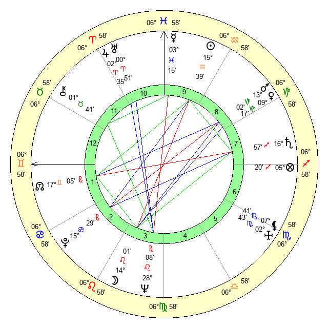| Mercury | 3 Pisces 15 | 14 Aquarius 22 | 2 Gemini 30 |
