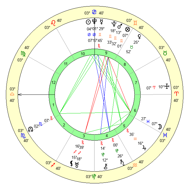 | Moon | 7 Pisces 24 | 22 Cancer 20 | 20 Virgo 30 |