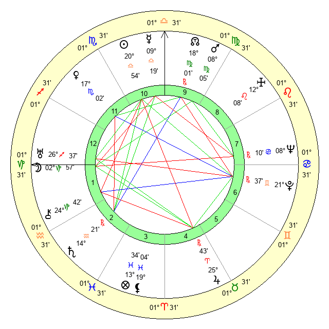 | Mars | 8 Virgo 5 | 15 Scorpio 18 | 13 Scorpio 38 |