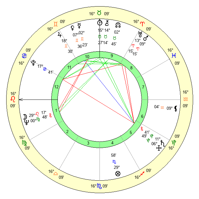 | Moon | 29 Leo 24 | 11 Virgo 28 | 19 Aquarius 36 |