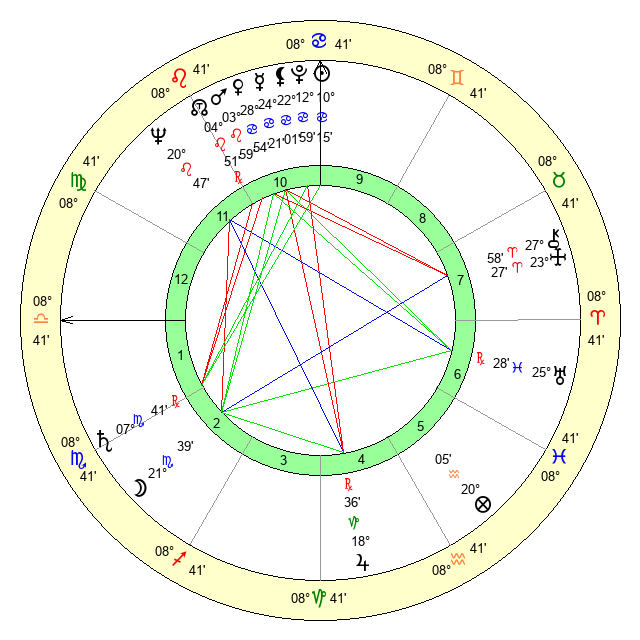 | Mars | 4 Leo 0 | 8 Virgo 46 | 7 Libra 44 |