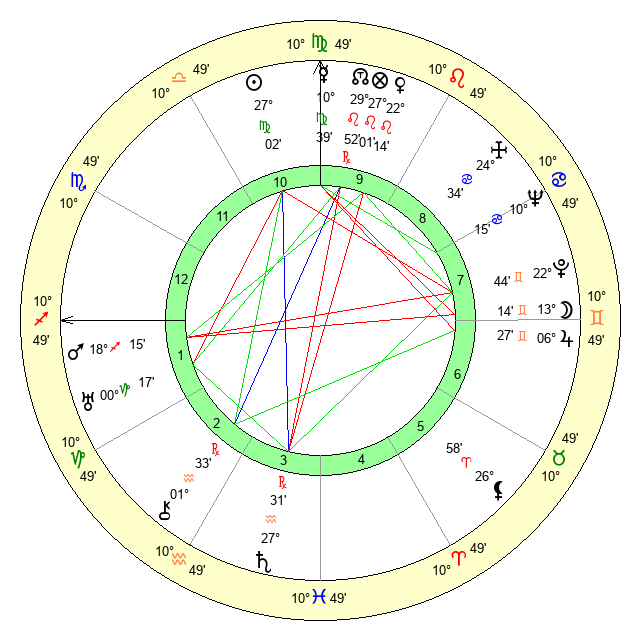 | Moon | 13 Gemini 11 | 14 Virgo 58 | 8 Scorpio 51 |