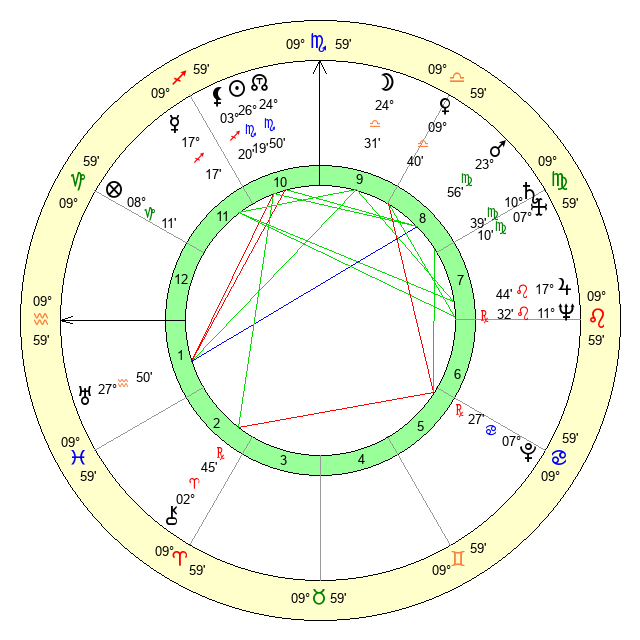 | Mars | 23 Virgo 56 | 10 Sagittarius 59 | 8 Scorpio 28 |