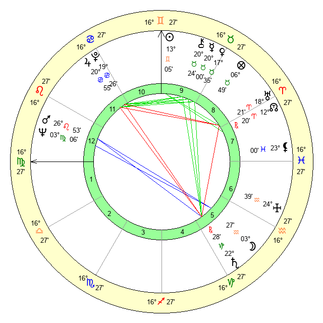 | Sun | 13 Gemini 6 | 14 Gemini 19 | 13 Virgo 7 |