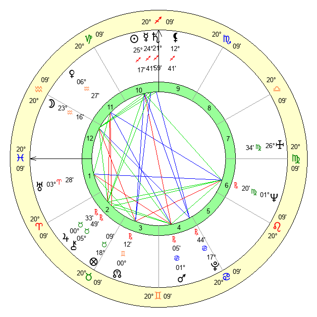 | Neptune | 1 Virgo 20 | 27 Pisces 9 | 29 Leo 10 |