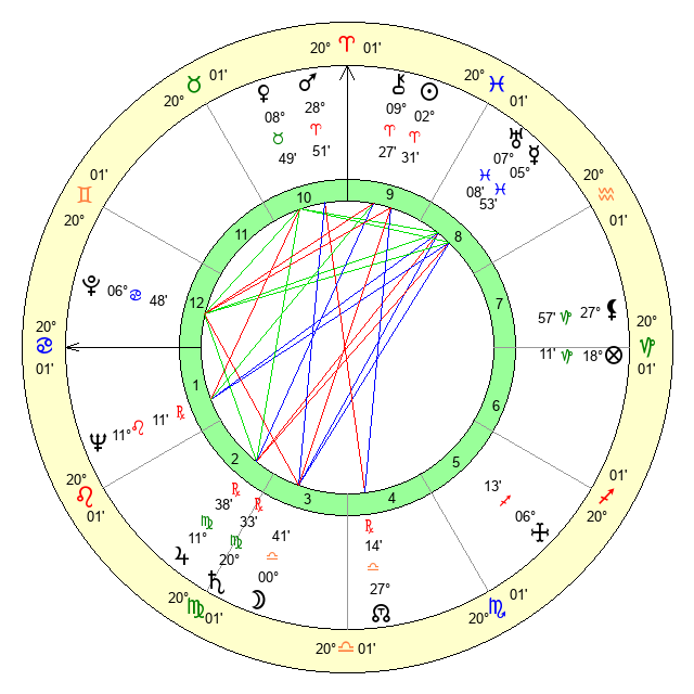 | Mars | 28 Aries 51 | 21 Cancer 7 | 11 Cancer 12 |