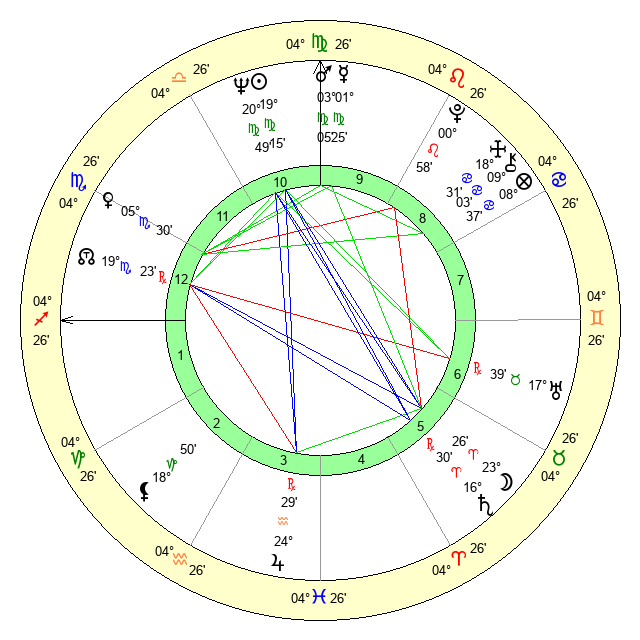 | Mercury | 1 Virgo 25 | 19 Virgo 31 | 28 Sagittarius 18 |