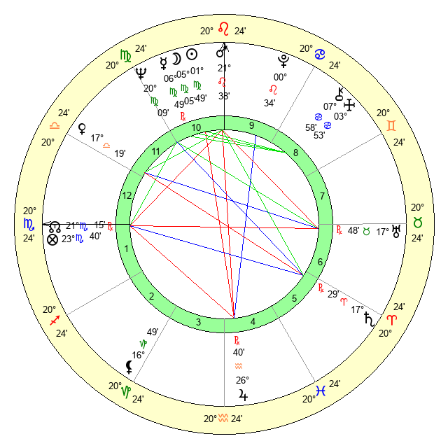 | Moon | 5 Virgo 4 | 1 Libra 26 | 12 Scorpio 32 |