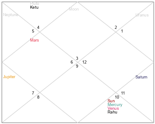 | Venus | 10 Aquarius 59 | 14 Pisces 48 | 1 Gemini 39 |