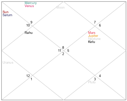 | Rahu | 9 Pisces 48 | 0 Aries 23 | 4 Pisces 56 |