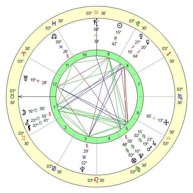 | Moon | 15 Taurus 59 | 9 Aries 21 | 20 Virgo 4 |