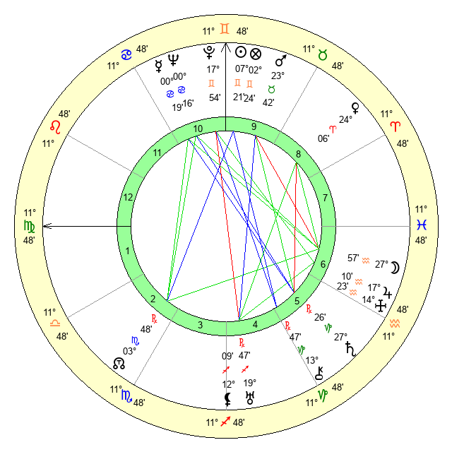 | Sun | 7 Gemini 22 | 8 Gemini 34 | 5 Libra 36 |