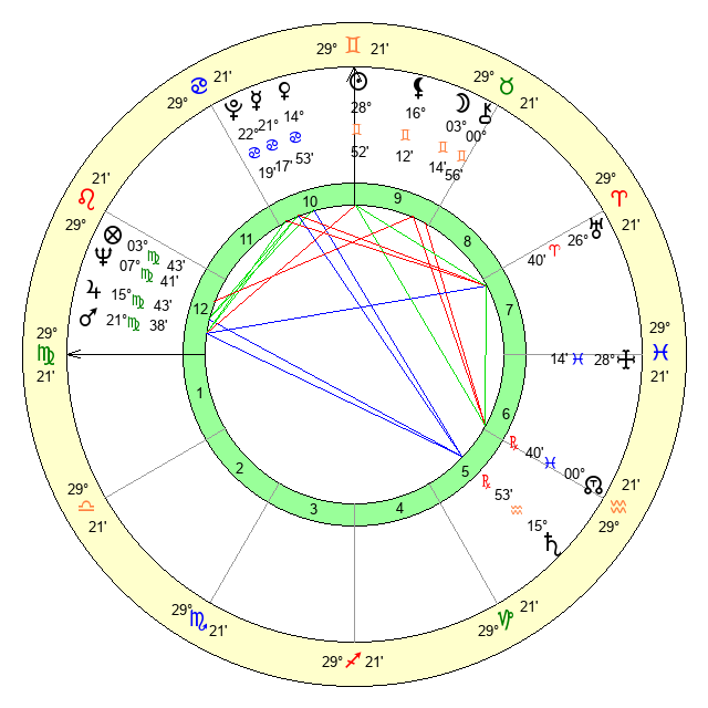 | Sun | 28 Gemini 53 | 29 Gemini 37 | 27 Virgo 16 |