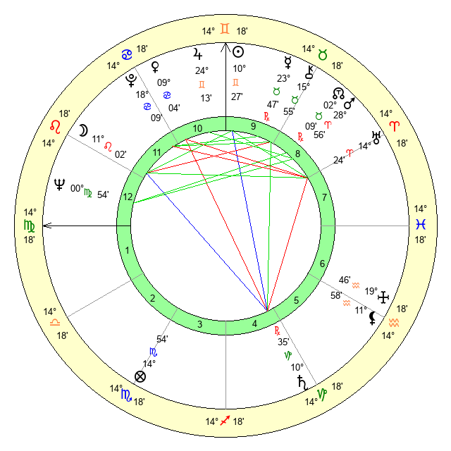 | Sun | 10 Gemini 27 | 11 Gemini 27 | 11 Virgo 25 |