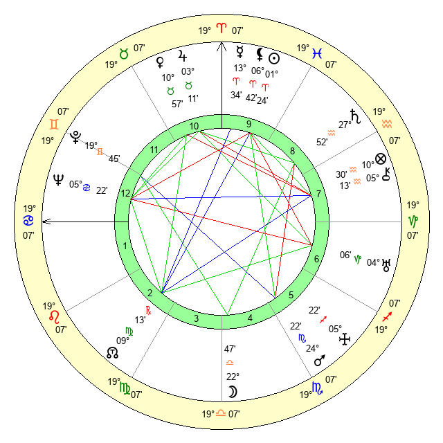 | Neptune | 5 Cancer 23 | 29 Pisces 42 | 8 Cancer 39 |