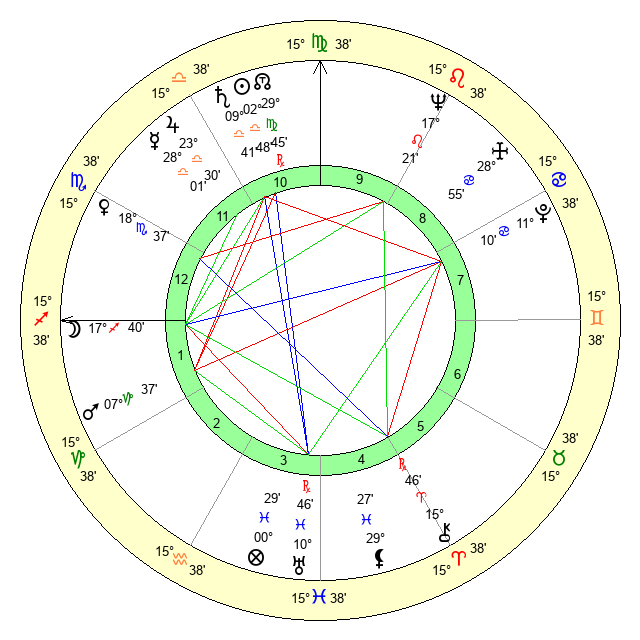 | Moon | 17 Sagittarius 46 | 27 Scorpio 46 | 15 Virgo 44 |