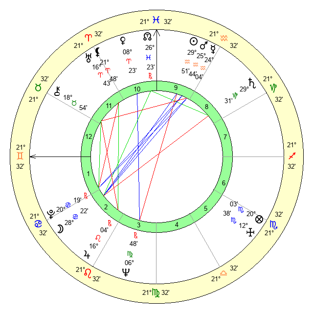 | Sun | 29 Aquarius 51 | 1 Pisces 18 | 1 Gemini 21 |
