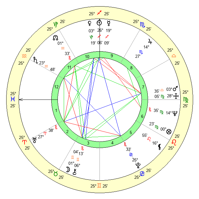 | Neptune | 14 Virgo 34 | 29 Pisces 23 | 12 Virgo 47 |