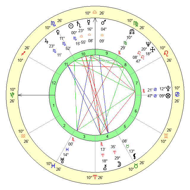 | Saturn | 24 Libra 29 | 26 Pisces 3 | 2 Scorpio 53 |