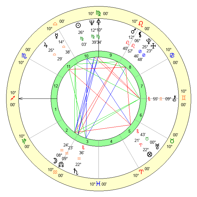 | Moon | 8 Aquarius 28 | 2 Virgo 17 | 13 Gemini 42 |