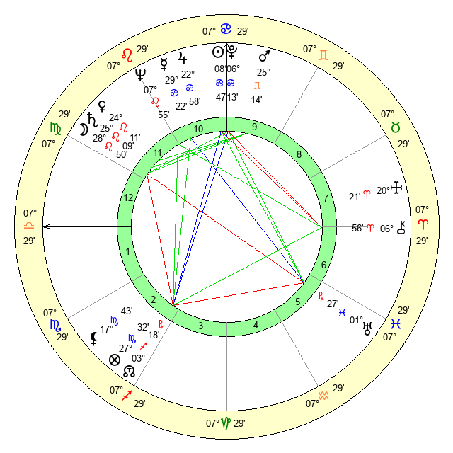 | Sun | 8 Cancer 47 | 10 Cancer 6 | 21 Libra 17 |