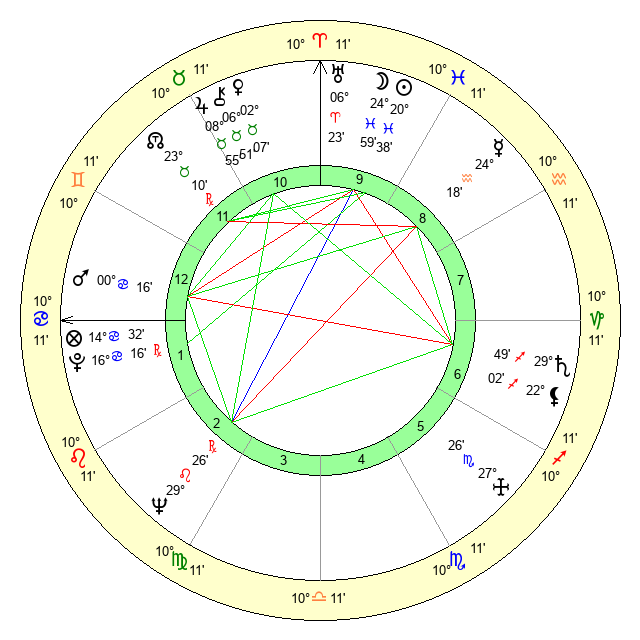 | Moon | 25 Pisces 1 | 22 Leo 9 | 12 Libra 7 |