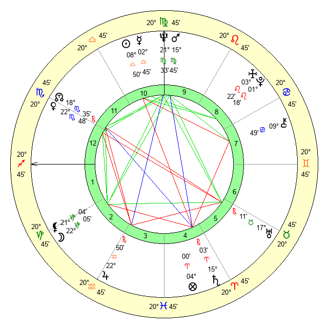 | Neptune | 21 Virgo 33 | 0 Aries 29 | 23 Virgo 20 |
