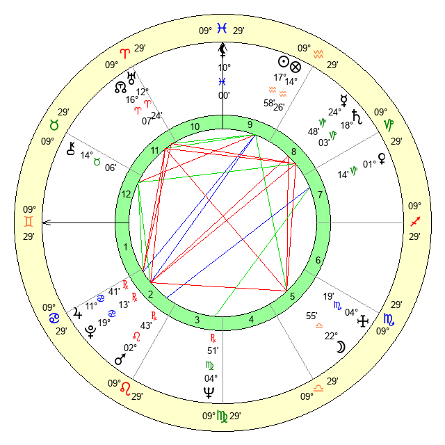 | Moon | 22 Libra 45 | 19 Gemini 48 | 25 Pisces 31 |