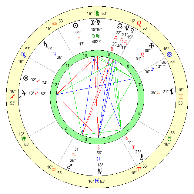 | Mercury | 16 Virgo 28 | 15 Libra 53 | 26 Sagittarius 45 |