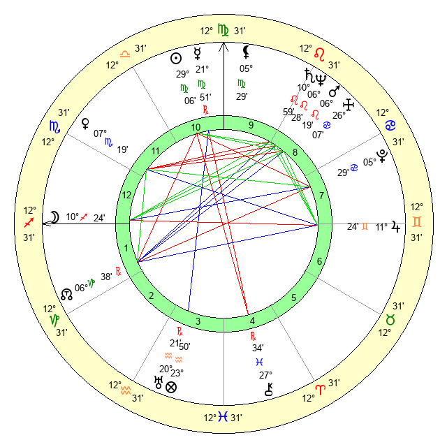 | Sun | 29 Virgo 6 | 29 Virgo 56 | 17 Capricorn 37 |