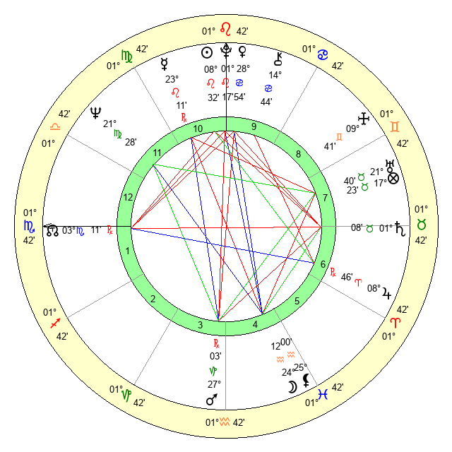 | Moon | 24 Aquarius 13 | 11 Scorpio 41 | 14 Aries 32 |
