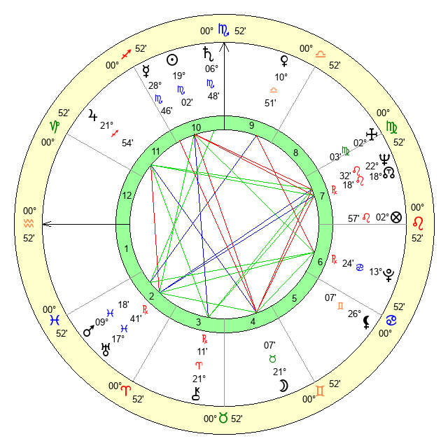 | Saturn | 7 Scorpio 20 | 25 Pisces 17 | 14 Scorpio 52 |