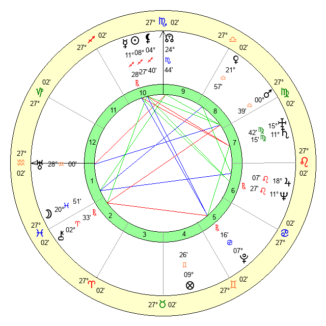 | Saturn | 11 Virgo 56 | 25 Pisces 4 | 7 Virgo 41 |