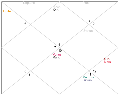 | Rahu | 17 Aquarius 8 | 27 Pisces 3 | 12 Aquarius 19 |