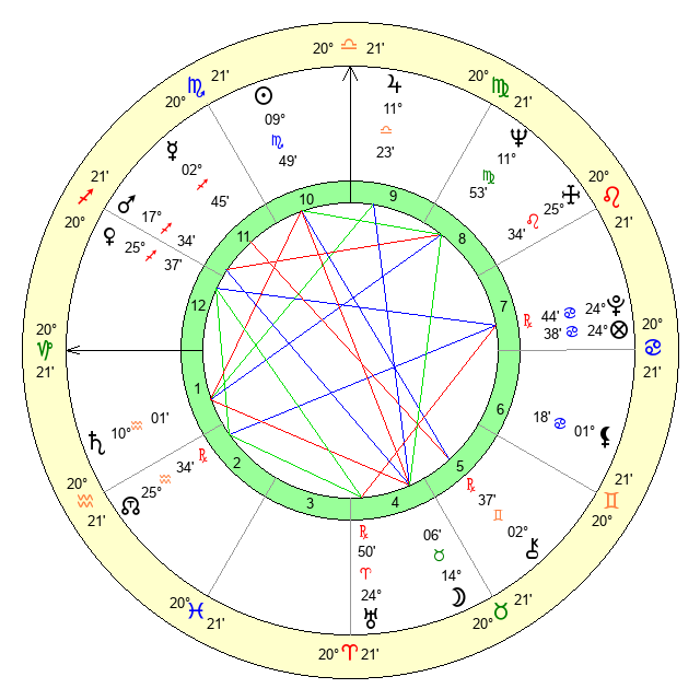 | Jupiter | 11 Libra 10 | 25 Cancer 2 | 22 Libra 53 |