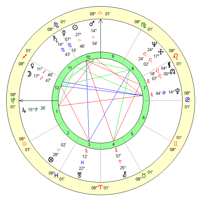 | Saturn | 15 Scorpio 13 | 26 Pisces 13 | 25 Scorpio 29 |
