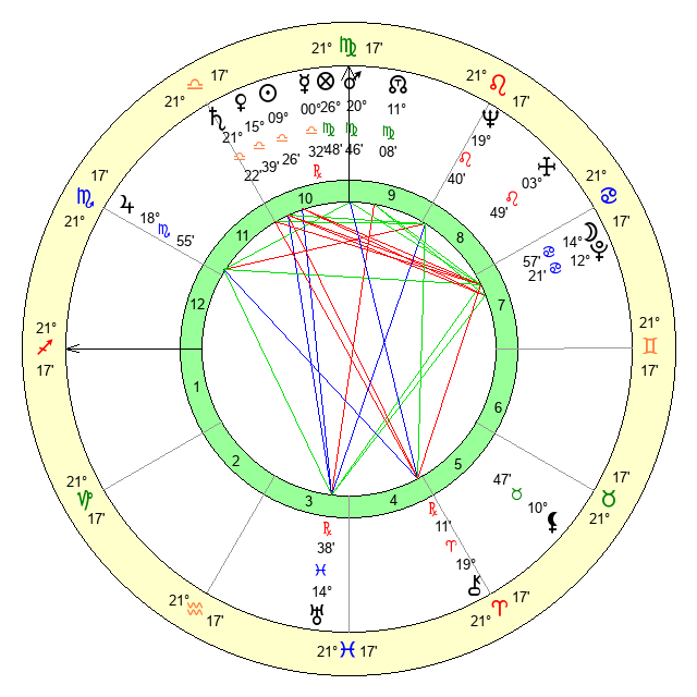 | Mars | 20 Virgo 47 | 7 Scorpio 43 | 26 Scorpio 5 |