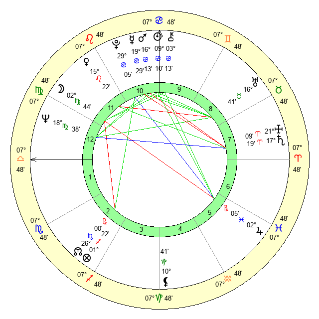 | Sun | 9 Cancer 10 | 10 Cancer 6 | 2 Libra 56 |