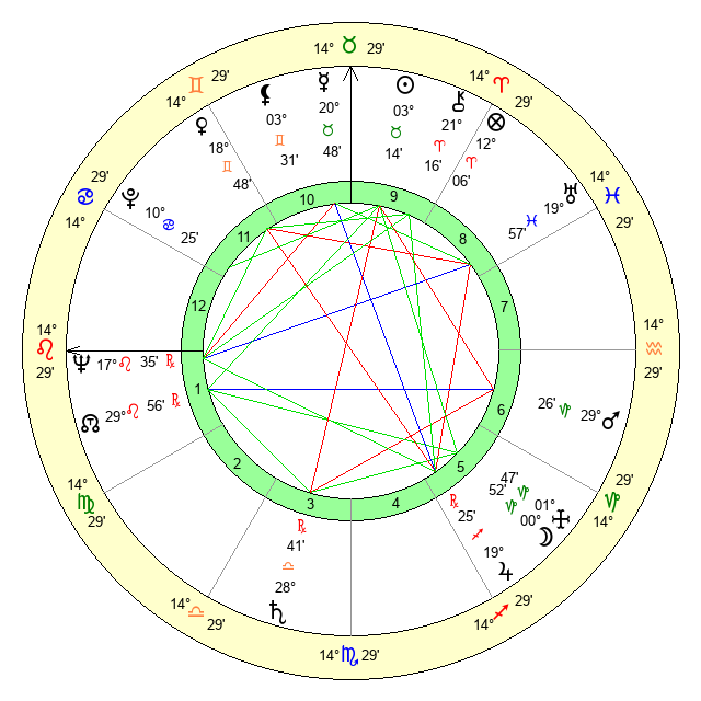 | Neptune | 17 Leo 35 | 0 Aries 51 | 19 Leo 43 |