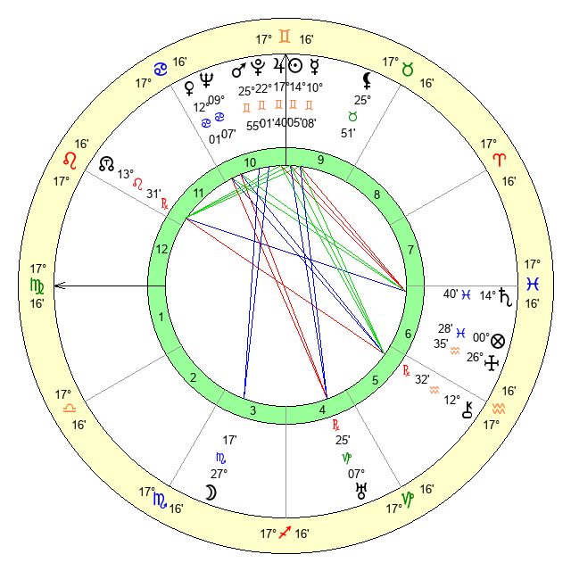 | Sun | 14 Gemini 6 | 15 Gemini 17 | 8 Libra 35 |