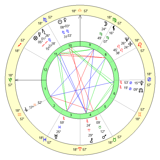 | Venus | 3 Scorpio 34 | 23 Libra 27 | 7 Pisces 50 |