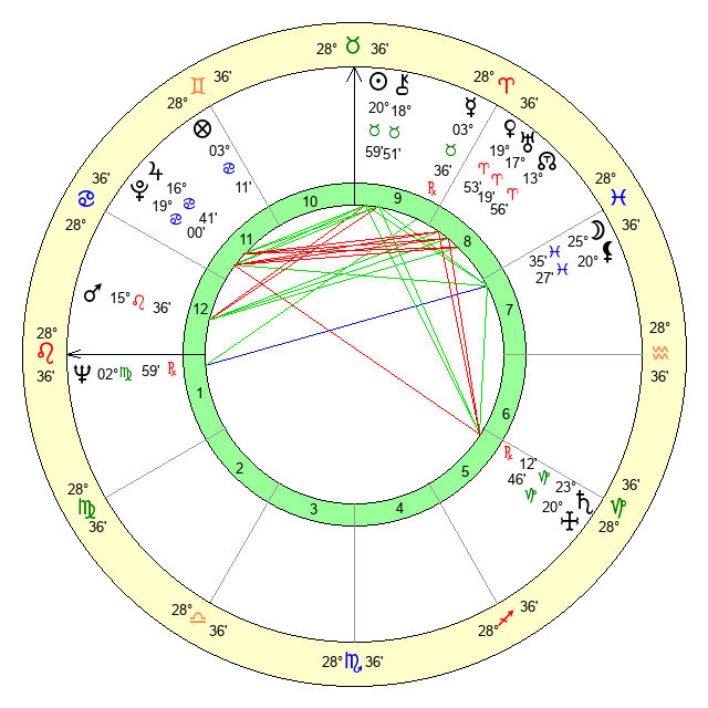 | Moon | 25 Pisces 31 | 22 Scorpio 14 | 2 Virgo 44 |