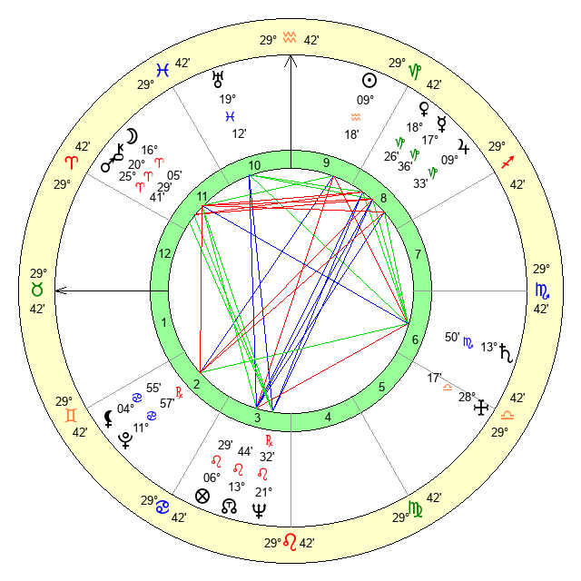 | Saturn | 14 Scorpio 22 | 17 Pisces 6 | 11 Scorpio 1 |