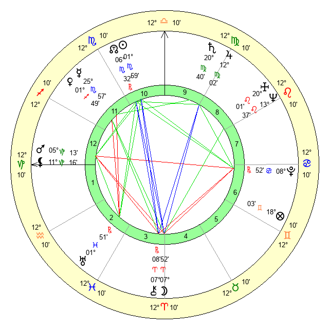 | Moon | 7 Aries 52 | 18 Sagittarius 11 | 14 Aquarius 56 |