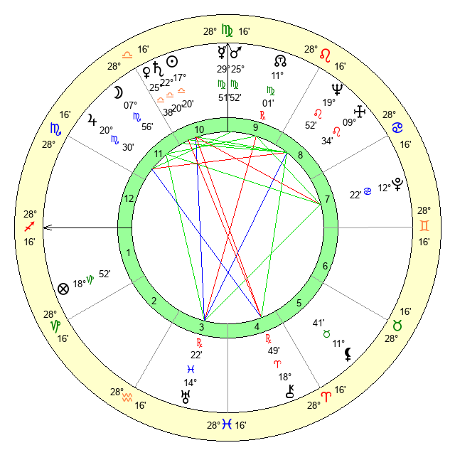 | Saturn | 22 Libra 55 | 26 Pisces 52 | 2 Scorpio 33 |
